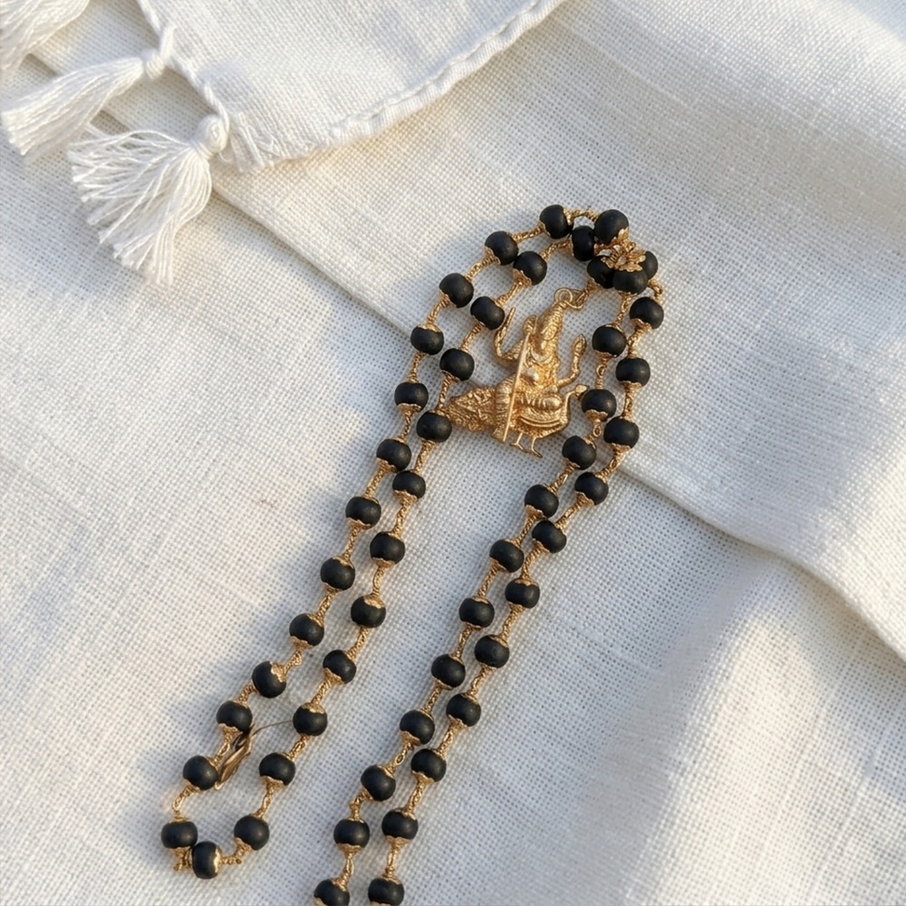 Karungali Maala (6mm) with Panchaloham capped and Murugan Pendant
