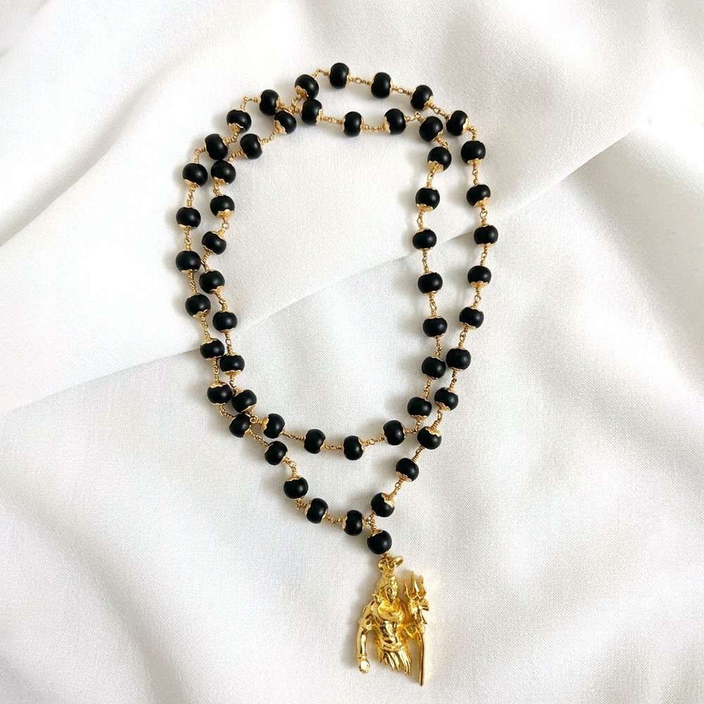 Karungali wood is revered for its grounding and protective qualities, helping to ward off negativity and bring emotional balance. Combined with the divine energy of Lord Shiva and the Trishool, this mala becomes a spiritually empowering ornament for everyday wear.