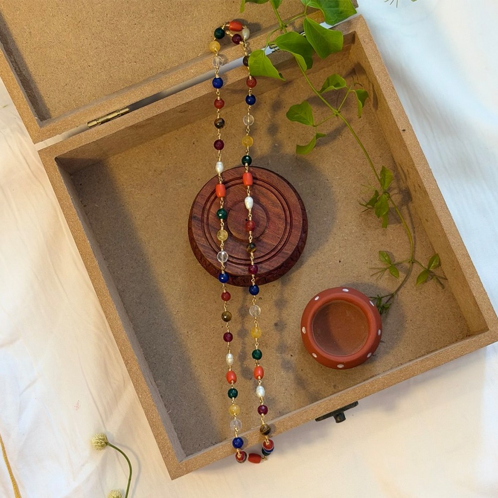 Each stone is associated with a planet, creating a powerful combination that helps balance planetary energies and enhance overall well-being. Traditionally worn for astrological harmony, protection, and prosperity, this mala is both spiritual and meaningful.